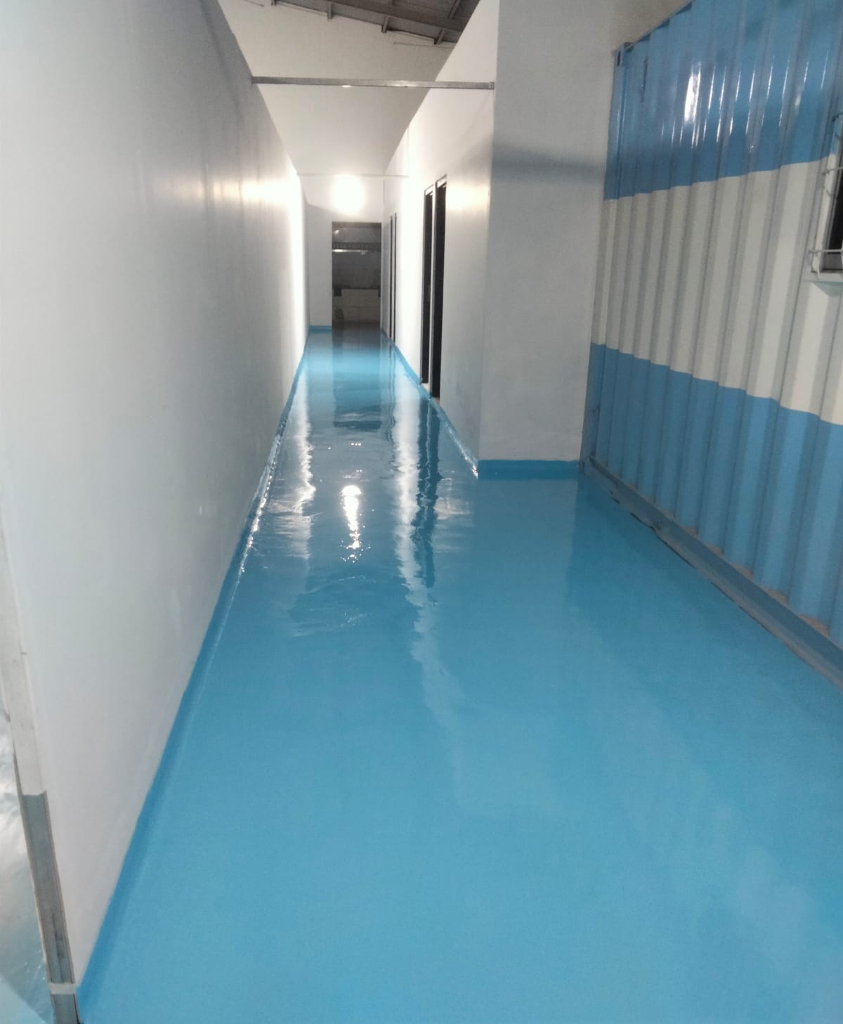 Kualitas Material yang Digunakan: Pastikan mereka menggunakan material epoxy berkualitas tinggi dengan ketebalan mikron yang sesuai dengan kebutuhan ruangan.